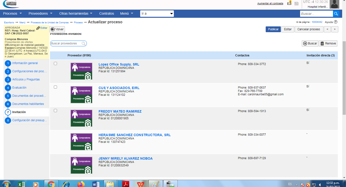 - Listado de compras y contrataciones realizadas y aprobadas